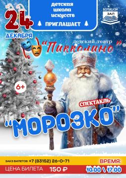 Спектакль "МОРОЗКО". 24 декабря в 17-00. Большой зал ДШИ. Билет: 150 руб. Возможна оплата по "Пушкинской карте".